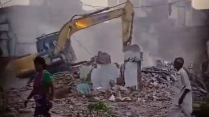 Bulldozer action near Faiz-e-Ilahi Mosque in Delhi at midnight, stones pelted at police in protest, tension in the area.