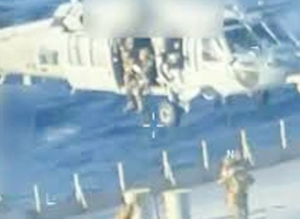 Many American commandos landed on the oil tanker with the help of ropes and captured it.
