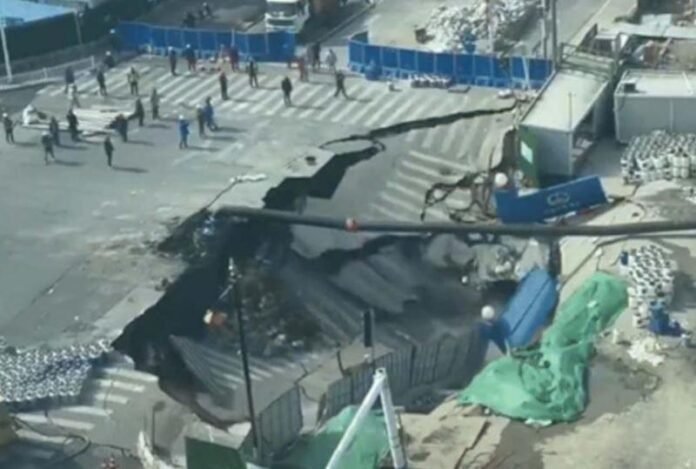 Shanghai,. There was a stir in China’s major metropolis Shanghai when a busy road suddenly caved in. The incident took place near Qixin Road in Minhang District, where the road surface collapsed into a 10 to 20 meter wide crater within seconds. The entire incident was captured in the CCTV cameras installed nearby.